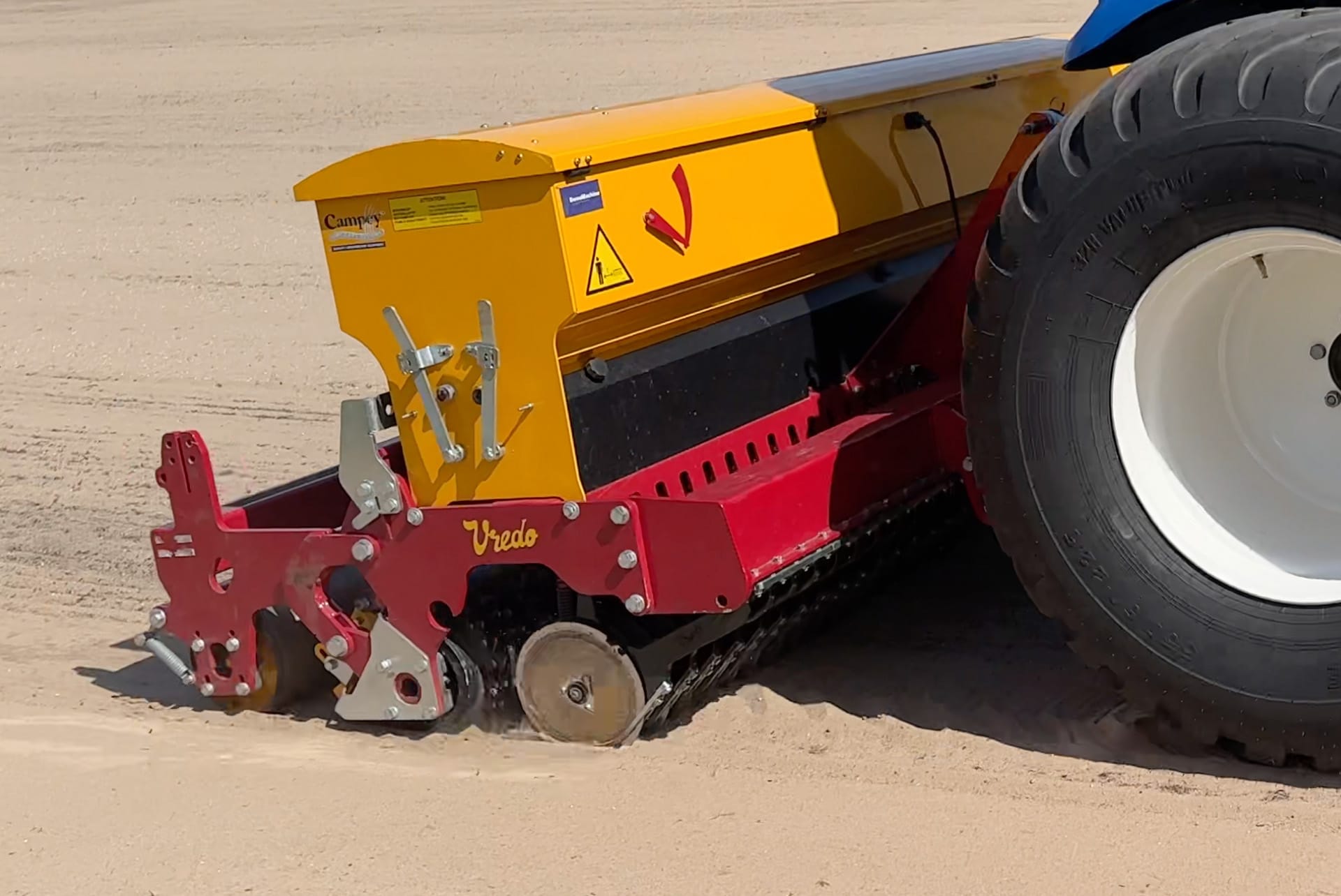 The short distance and distribution of the seedlings creates a fantastic homogeneous growth pattern. By using both sowing techniques in a single operation, there is no need for another machine. In other words, it offers the best of both worlds, making this a unique machine for the renovation of hybrid sports fields, among other things.